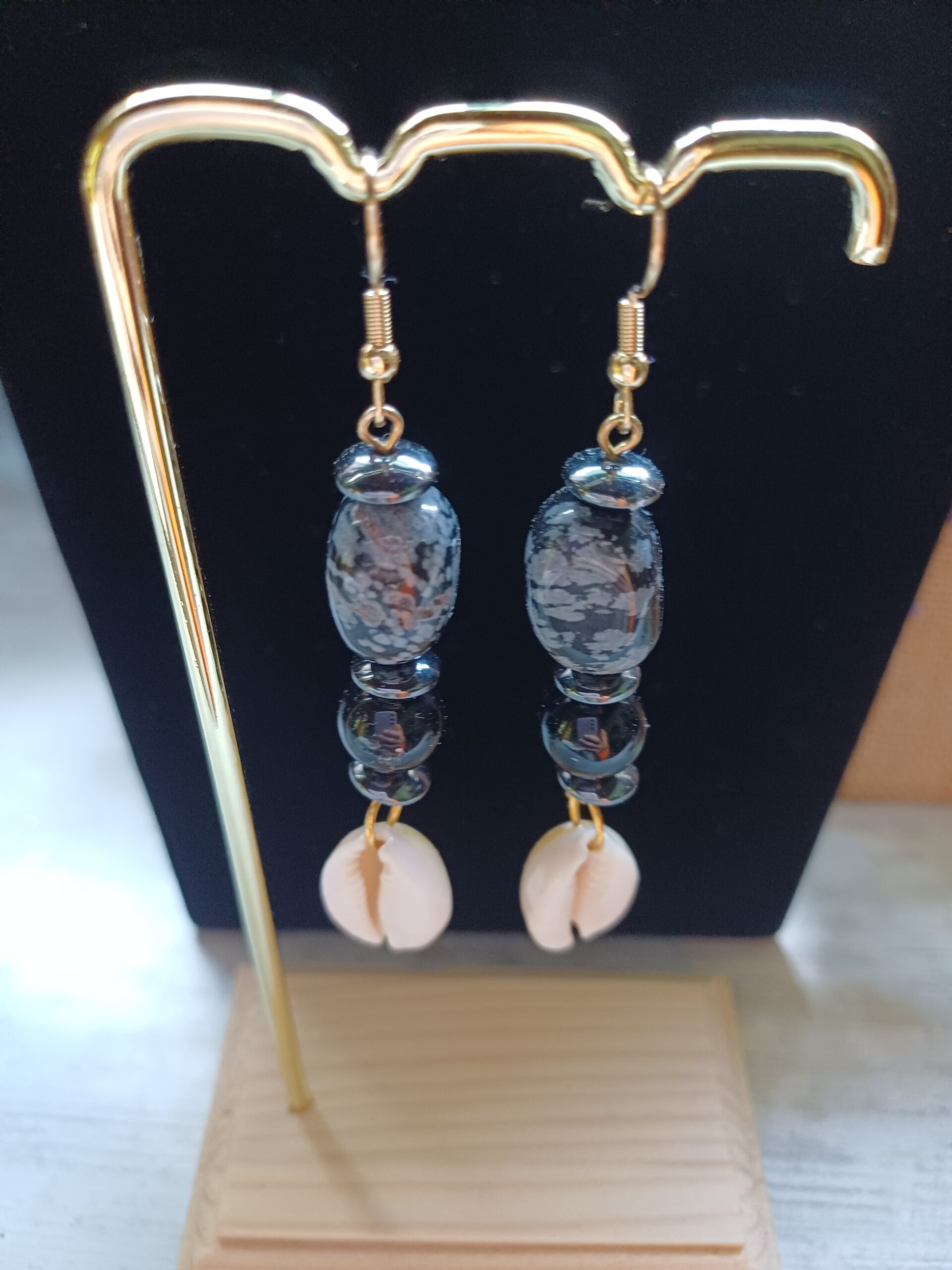 Boucle d’oreille cory et obsidienne neige