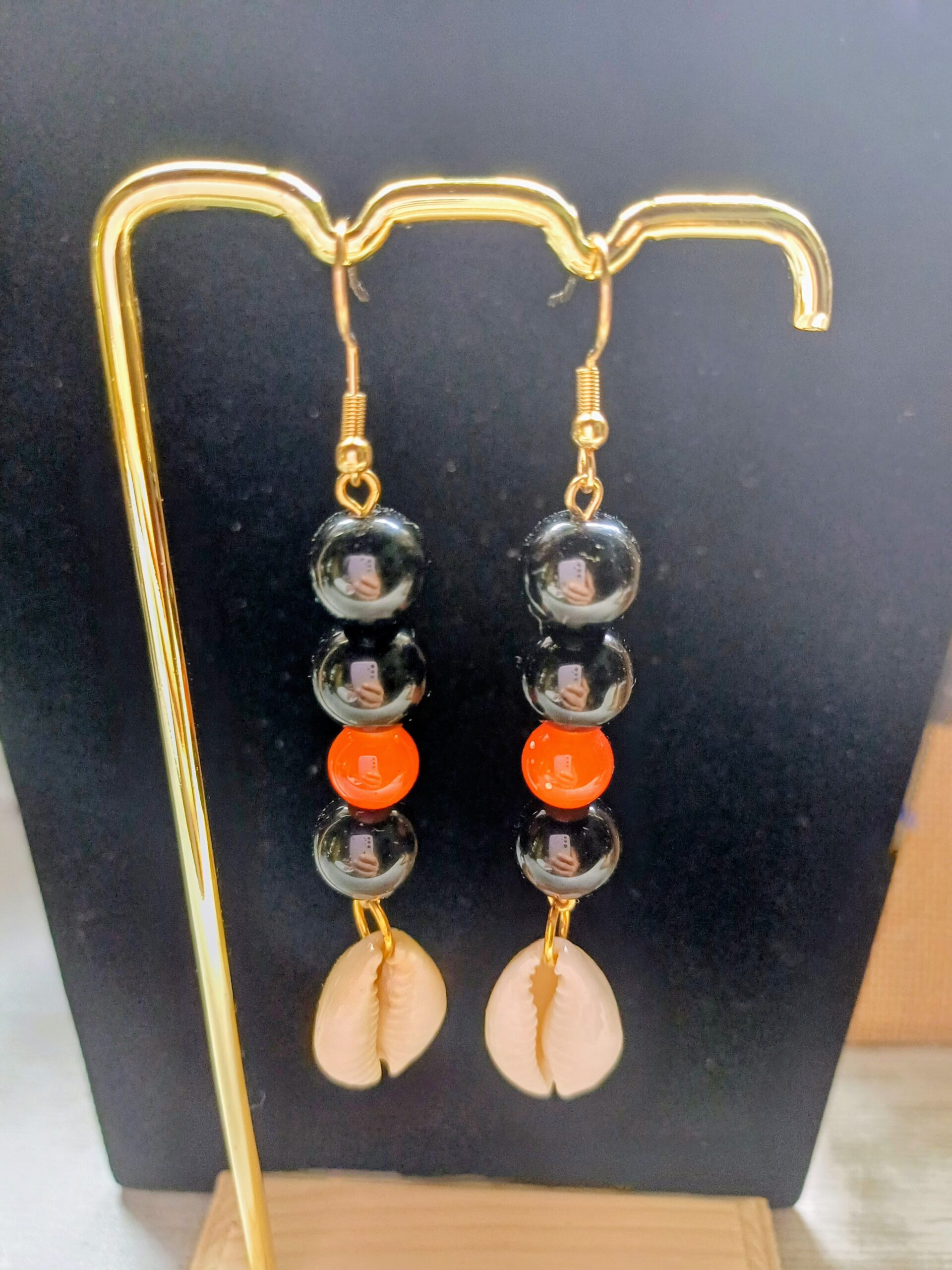 Boucle d’oreille cory et obsidienne, pêrle de verre orange