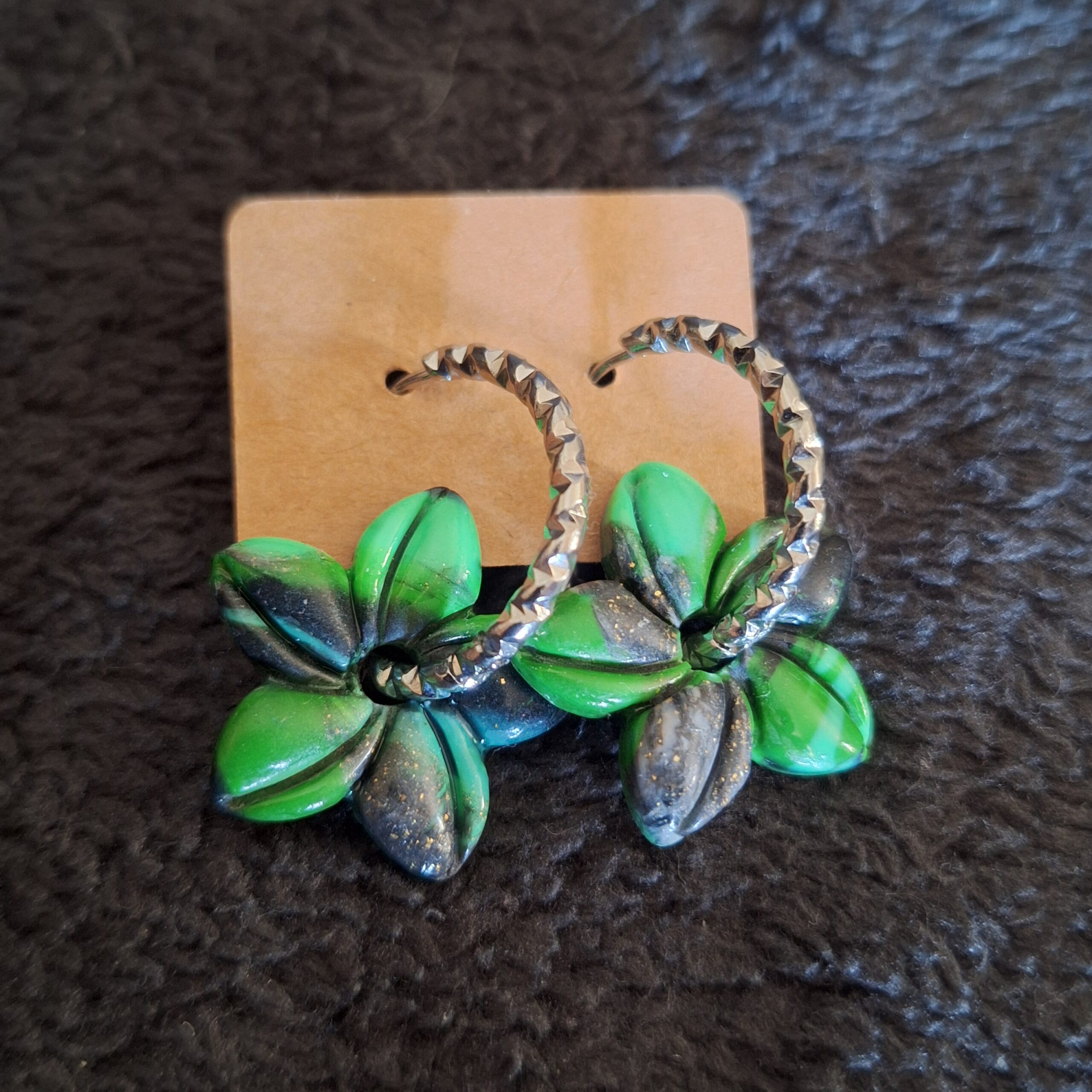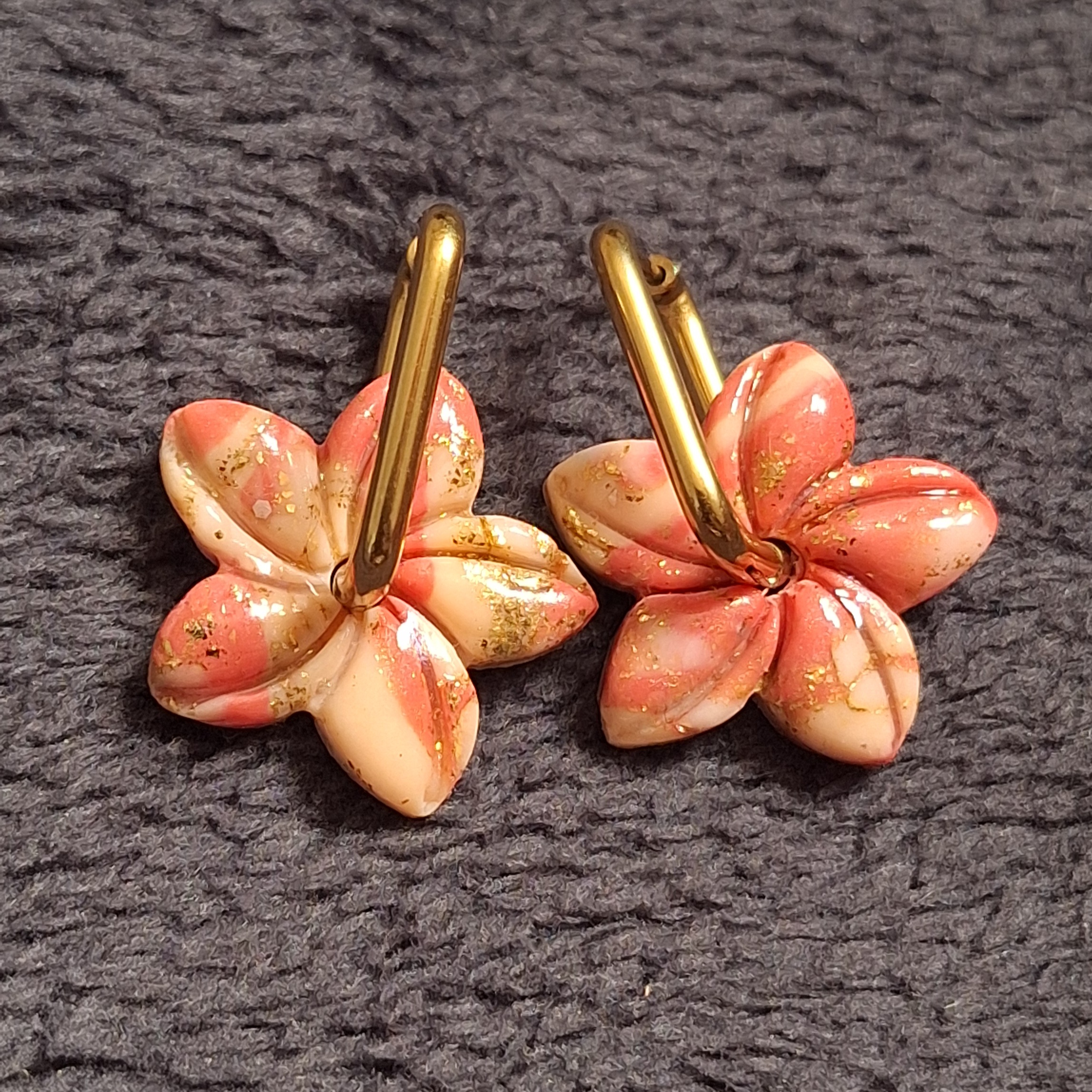 Boucles d’oreilles artisanales en pâte polymère, façonnées et assemblées à la main.