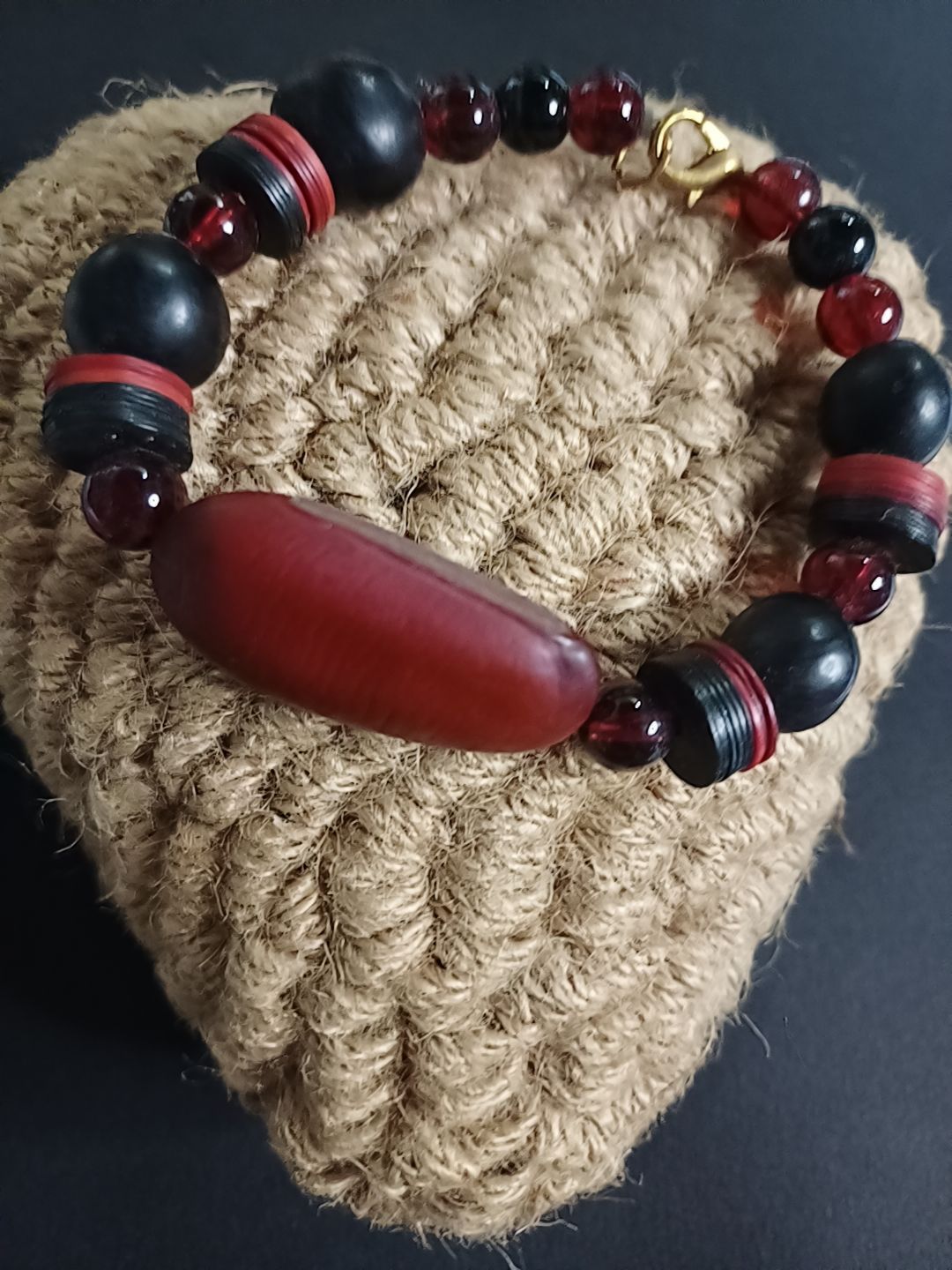 bracelet avec un mélange de graines rouge et noir venues d’Afrique et de Guadeloupe