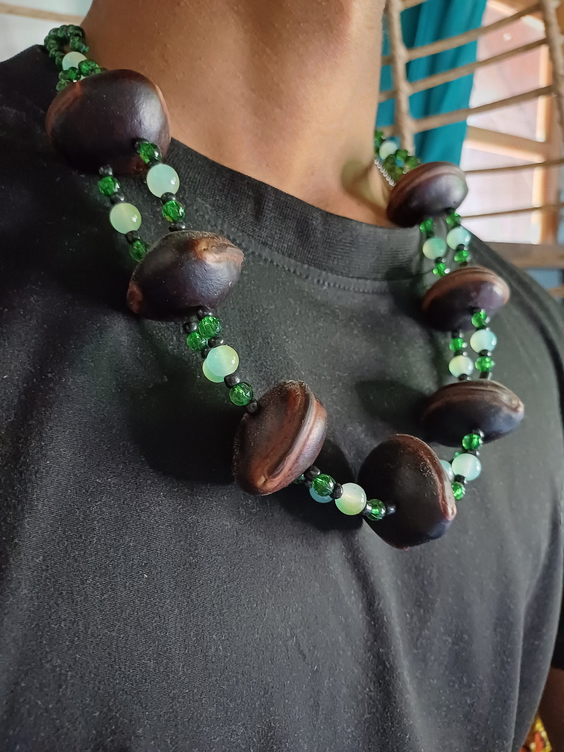 collier oeil de boeuf et perle d’eau verte